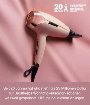 ghd pink collection. In den letzten 20 Jahren hat ghd weltweit mehr als 23 Millionen Dollar für Brustkrebsorganisationen gesammelt und engagiert sich weiterhin dafür, Jahr für Jahr weitere Spenden zu generieren. Das Abtasten der Brüste ist für alle Frauen wichtig, denn Früherkennung rettet Leben. Deshalb wurde der exklusive ghd helios® Haatrockner so entwickelt, dass er mit ‘Take Control Now’ eine Erinnerung an das regelmäßige Abtasten enthält. Die Limited Edition enthält den ghd pink helios® Haatrockner in Light Peach Pink zusammen mit einem farblich passenden Travel Bag.